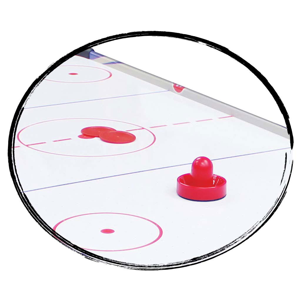 Mit diesem Airhockey-Tisch können kleine und große Spieler ihren Spaß haben. Das weiße Hochglanzspielfeld wird von einem Motor belüftet, damit die Pucks und Pusher auf dem Spielfeld schneller gleiten können. Durch die gute Beinkonstruktion mit Querstreben ist der Tisch sehr stabil.