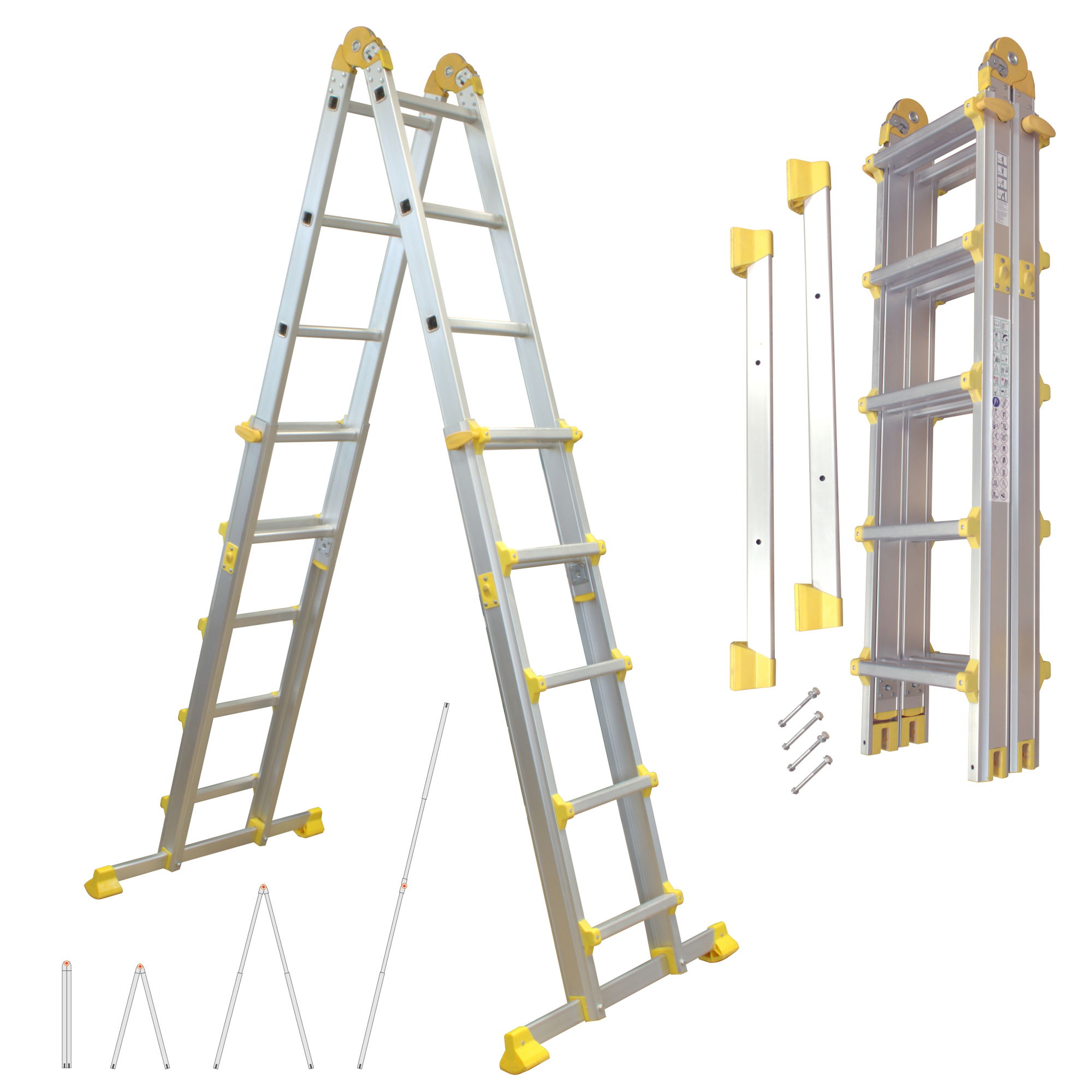 Mit unserer Vielzweckleiter decken Sie diese und noch viele weitere Anwendungsmöglichkeiten ab. Die Aluminium Teleskopleiter kann als Klappleiter, Anlegeleiter und Bockleiter eingesetzt werden und ist damit eine echte Vielzweckleiter.