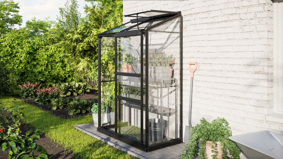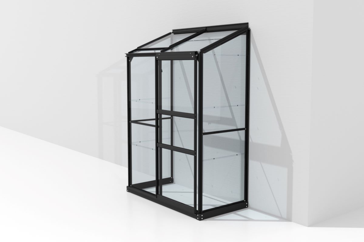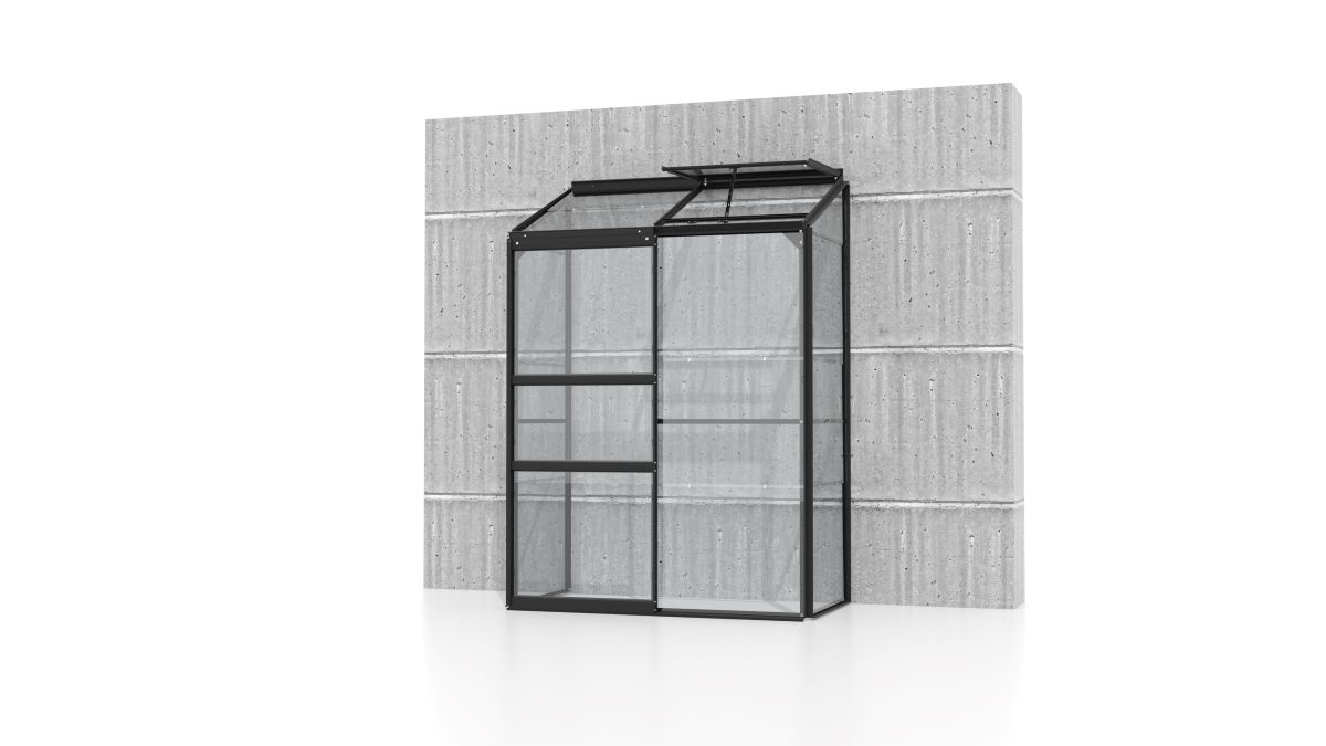 Anlehngewächshaus IDA 900 0,65 x 1,30 m, Alurahmen schwarz, ESG 3mm