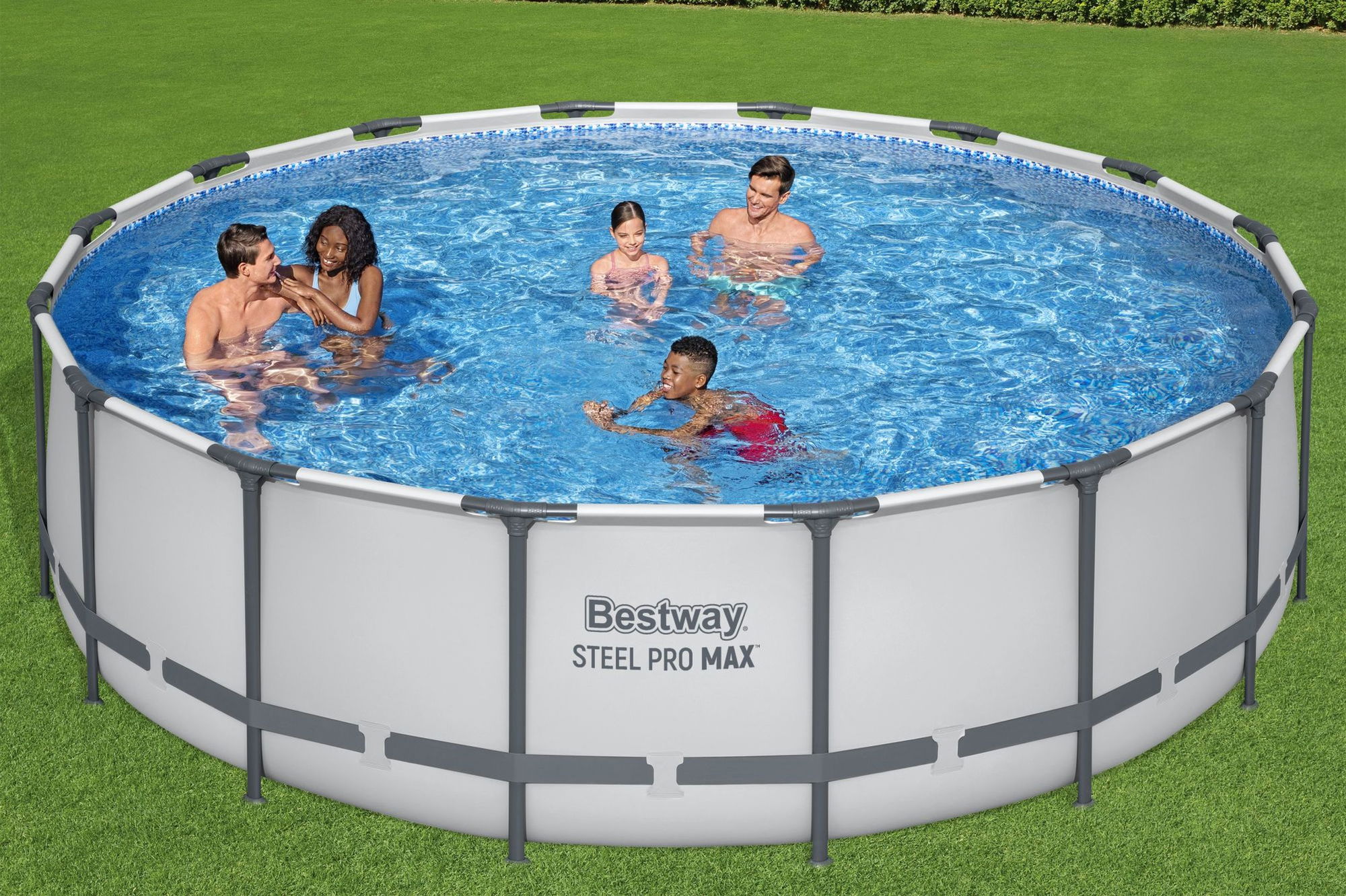 ## Für wen eignet sich das Bestway Steel Pro MAX Frame Pool Komplett-Set? Das Bestway Steel Pro MAX Frame Pool Komplett-Set Ø 488 x 122 cm ist ideal für Familien und Gartenbesitzer, die einen großen, stabilen Rundpool mit stimmigem Design und passender Filtertechnik suchen. Die Kombination aus robustem Stahlrahmen, widerstandsfähigem TriTech-Material und lichtgrauer Optik macht den Pool zu einer langlebigen Lösung für viele Sommer. Mit einem Fassungsvermögen von rund 19.480 Litern bei 90 % Füllung bietet der Pool reichlich Platz zum Schwimmen, Spielen und Abkühlen im Wasser. In Verbindung mit der im Set enthaltenen Filterpumpe, der Sicherheitsleiter und der Abdeckplane entsteht ein Komplettpaket, das die wichtigsten Komponenten für den Start in die Poolsaison bereits enthält.