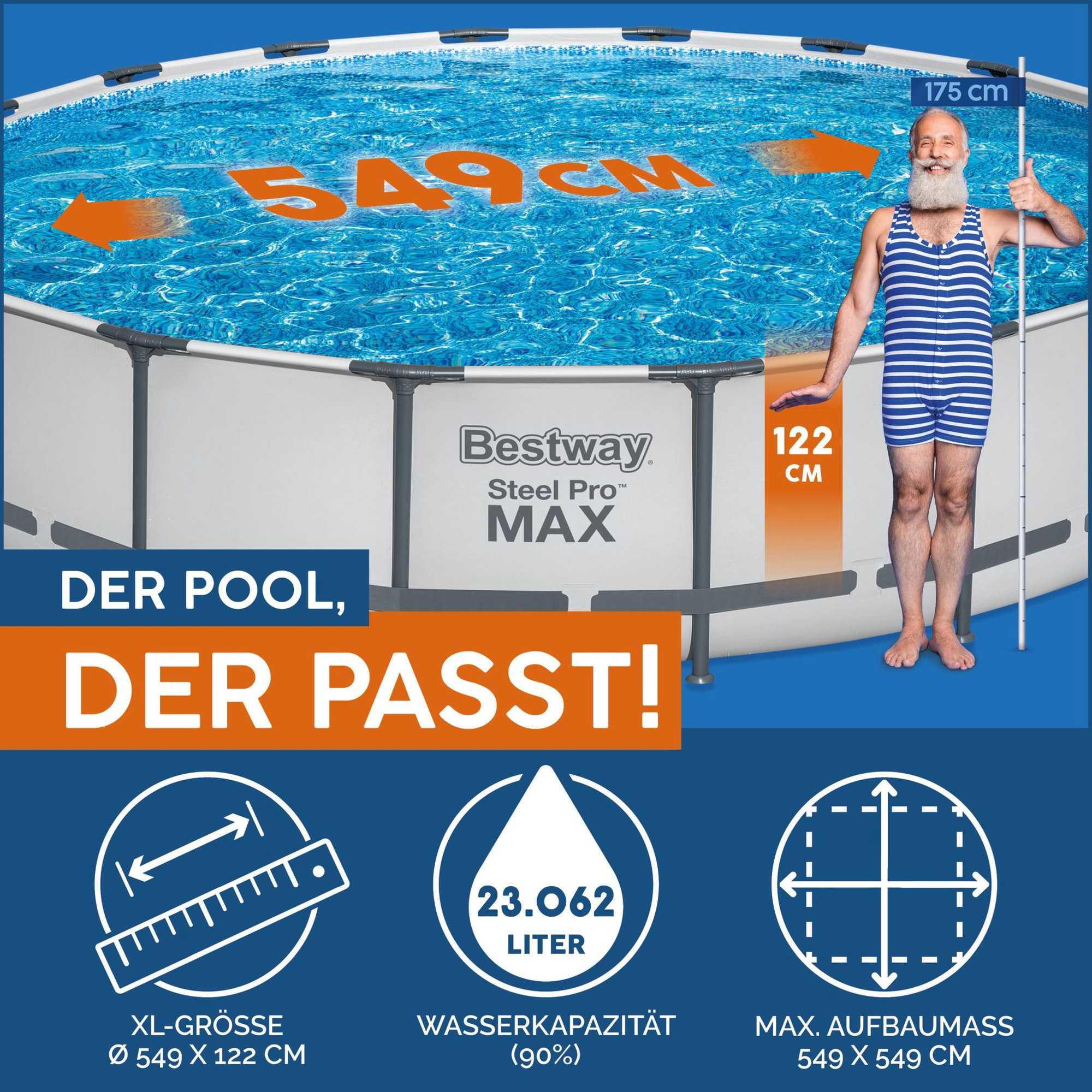 Bestway Steel Pro MAX Frame Pool Komplett-Set Ø 549 x 122 cm rund
