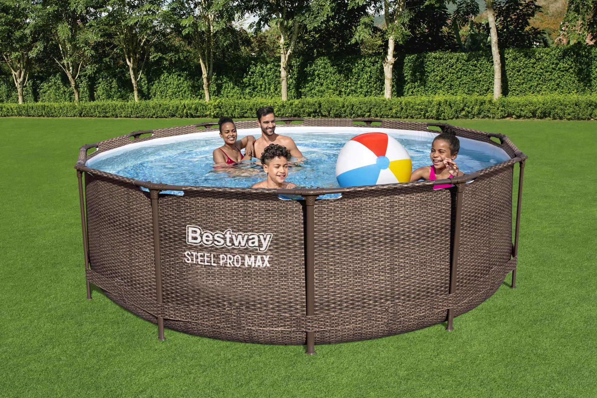 SICHERHEITSHINWEISE – ARTIKELNUMMER 56709 1. Allgemeine elektrische Sicherheit • Die Filterpumpe darf nur über einen Trenntransformator oder einen Personenschutzschalter (RCD) mit maximal 30 mA betrieben werden. Bei Fragen zur Elektroinstallation ist ein qualifizierter Elektriker hinzuzuziehen. • Die Stromquelle an der Gebäudeaußenwand muss sich mindestens 3,5 m vom Pool entfernt befinden. Auch der Transformator ist in einem Mindestabstand von 3,5 m zum Pool aufzustellen. • Die Pumpe darf nur mit der auf dem Gerät angegebenen Sicherheitskleinspannung betrieben werden. Verlängerungskabel dürfen nicht verwendet werden. • Das Netzkabel ist fest mit dem Gerät verbunden und nicht austauschbar. Wenn das Kabel beschädigt ist, darf das Gerät nicht weiterverwendet und muss ordnungsgemäß entsorgt werden. • Das Gerät ist vor allen Wartungsarbeiten und bei Nichtbenutzung von der Stromversorgung zu trennen. Der Stecker darf nicht mit nassen Händen berührt werden. • Die Filterpumpe darf nicht betrieben werden, solange sich Personen im Pool befinden – es besteht Stromschlaggefahr. • Die Pumpe muss an eine ordnungsgemäß geerdete Stromquelle angeschlossen werden. Vor Arbeiten an der elektrischen Installation ist der Strom abzuschalten. Der Erdungsstift am Stecker darf nicht entfernt, der Stecker nicht verändert und es dürfen keine Adapterstecker verwendet werden. • Das Stromkabel darf nicht vergraben werden und ist so zu verlegen, dass es nicht durch Rasenmäher, Heckenscheren oder andere Geräte beschädigt werden kann. • Die Filterpumpe ist ausschließlich für die Verwendung mit Aufstellpools vorgesehen. Die Nutzung bei eingelassenen oder fest installierten Schwimmbecken ist nicht zulässig. • Der Betrieb der Pumpe an einer ungeeigneten Stromquelle kann zu Gesundheitsgefahren und irreparablen Schäden am Gerät führen. • Mit Pumpe und Kabel ist sorgsam umzugehen. Die Pumpe darf nicht am Kabel getragen oder gezogen werden. Zum Abziehen aus der Steckdose ist immer am Steckergehäuse anzusetzen. Kabel und Gerät sind vor scharfen Kanten, Öl, Hitzequellen und Abschürfungen zu schützen. • Wartungsarbeiten dürfen nur von Personen ab 18 Jahren durchgeführt werden. Bei Unsicherheit bezüglich Installation oder Betrieb ist ein qualifizierter Installateur oder Fachbetrieb zu konsultieren. Alle Elektroinstallationen müssen den lokalen und nationalen Vorschriften entsprechen. 2. Sicherheit der Leiter • Die Sicherheitsleiter dient ausschließlich als Zugangsvorrichtung für Aufstellpools. Die maximale Poolwandhöhe beträgt 107 cm, die maximale Wandbreite 30 cm und die maximale Belastbarkeit 150 kg. • Vor Aufbau und Verwendung ist die gesamte Leiter-Gebrauchsanweisung sorgfältig zu lesen und für spätere Nachschlagezwecke aufzubewahren. Eine Nichtbeachtung der Hinweise stellt ein Sicherheitsrisiko dar. • Die Leiter ist immer auf einem festen und ebenen Untergrund zu platzieren. • Es darf sich immer nur eine Person gleichzeitig auf der Leiter befinden. Beim Ein- und Ausstieg ist die Leiter stets im Blick zu behalten und sicher zu umfassen. • Die Sicherheitsleiter soll hochgeklappt oder aus dem Pool entfernt werden, wenn sich keine Personen im oder am Pool aufhalten, um unbefugten Zugang zu verhindern. • Sprünge in den Pool von der Leiter, den Poolwänden oder anderen nahegelegenen Objekten sind streng verboten. • Der Bereich um die Sicherheitsleiter darf nicht als Aufenthalts- oder Spielbereich genutzt werden. • Die Leiter darf sich nur dann im Pool befinden, wenn eine durchgehende Aufsicht durch eine erwachsene Person gewährleistet ist. Kinder im und am Wasser müssen ständig beaufsichtigt werden. • Vor jeder Benutzung sind sämtliche Verschraubungen, Halteklammern und mögliche scharfe Kanten zu prüfen. Verrostete oder beschädigte Teile sind umgehend zu ersetzen. • Bolzen und andere Kleinteile der Leiter müssen außerhalb der Reichweite von Kindern aufbewahrt werden. • Für Einlagerung und Winterbetrieb ist die Leiter vollständig zu reinigen, zu trocknen und in einer kühlen, trockenen Umgebung außerhalb der Reichweite von Kindern zu lagern. In der Nebensaison (Wintermonate) ist die Leiter aus dem Pool zu entfernen, vollständig zu demontieren und alle Komponenten gründlich zu trocknen. 3. Poolsicherheit & Nichtschwimmer • Alle Warnhinweise und Sicherheitsrichtlinien decken nur allgemein bekannte Risiken ab und können nicht alle Gefahren vollständig beschreiben. Vor Bau und Nutzung sind alle Hinweise sorgfältig zu lesen und mit Umsicht, gesundem Menschenverstand und gutem Urteilsvermögen zu handeln. • Die Gebrauchsanweisung ist aufzubewahren. Sollten Anweisungen fehlen, ist die Anleitung beim Hersteller oder online zu beschaffen. • Absperrungen, Beckenabdeckungen, Alarmanlagen oder ähnliche Vorrichtungen sind nur Hilfsmittel und ersetzen niemals die ständige und sachkundige Aufsicht durch erwachsene Personen. • Alle Nutzer des Pools, insbesondere Kinder, sollen schwimmen lernen. Alle Beckenbenutzer – einschließlich Kinder – müssen darüber informiert sein, wie sie sich im Notfall zu verhalten haben. • Es wird empfohlen, Kenntnisse in Erster Hilfe und Herz-Lungen-Wiederbelebung zu erwerben und regelmäßig aufzufrischen, um im Ernstfall schnell helfen zu können. • In flaches Wasser darf niemals gesprungen werden, da dies zu schweren Verletzungen oder sogar zum Tod führen kann. • Der Pool darf nicht genutzt werden, wenn man unter dem Einfluss von Alkohol oder Medikamenten steht, die die Fähigkeit zur sicheren Nutzung des Beckens beeinträchtigen. • In der Nähe des Pools sollten geeignete Rettungsmittel (z. B. ein Rettungsring) bereitliegen. • Ein funktionierendes Telefon und eine Liste mit Notrufnummern sollten in unmittelbarer Nähe des Pools vorhanden sein. • Wenn eine Beckenabdeckung verwendet wird, muss diese vor dem Betreten des Pools vollständig von der Wasseroberfläche entfernt werden. 