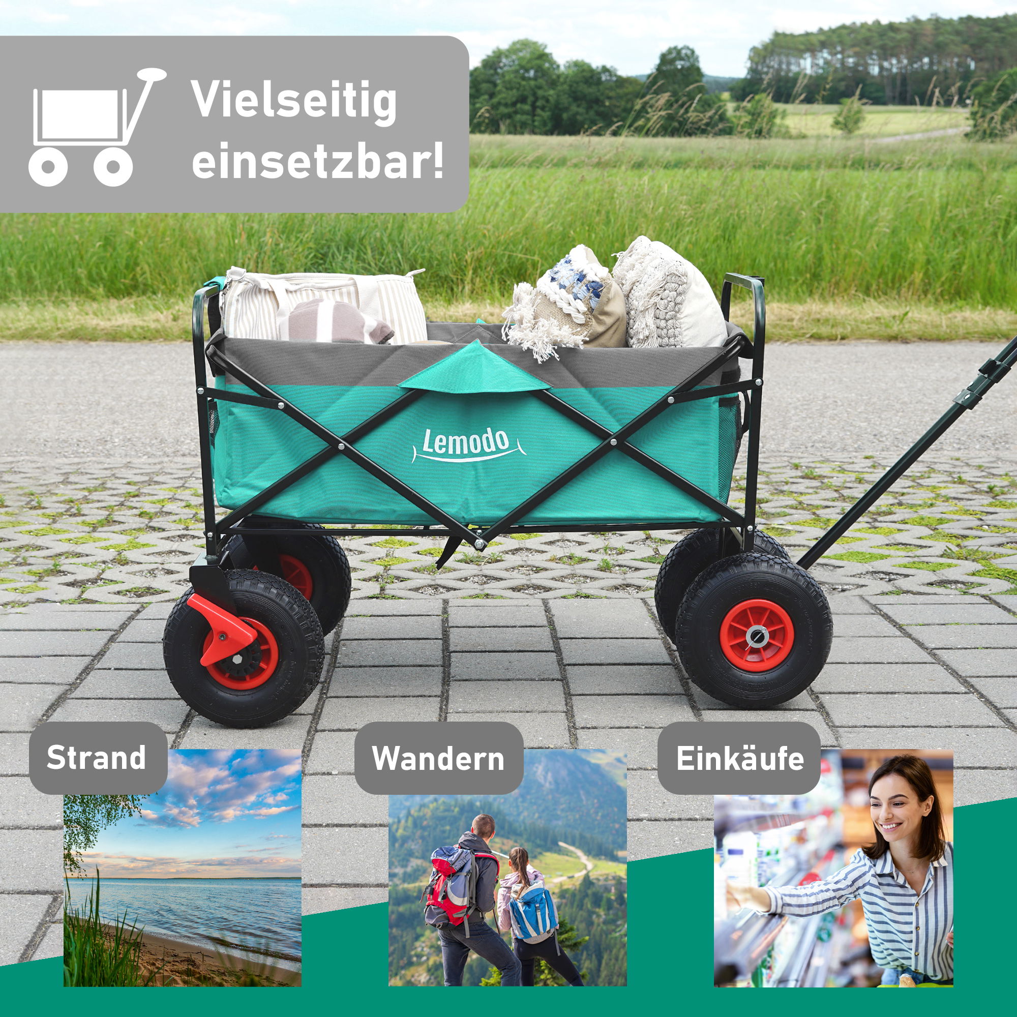 Produktinformationen "Bollerwagen faltbar, Handwagen mit 120 kg Zuladung, Leiterwagen mit Luftreifen, Grau"
