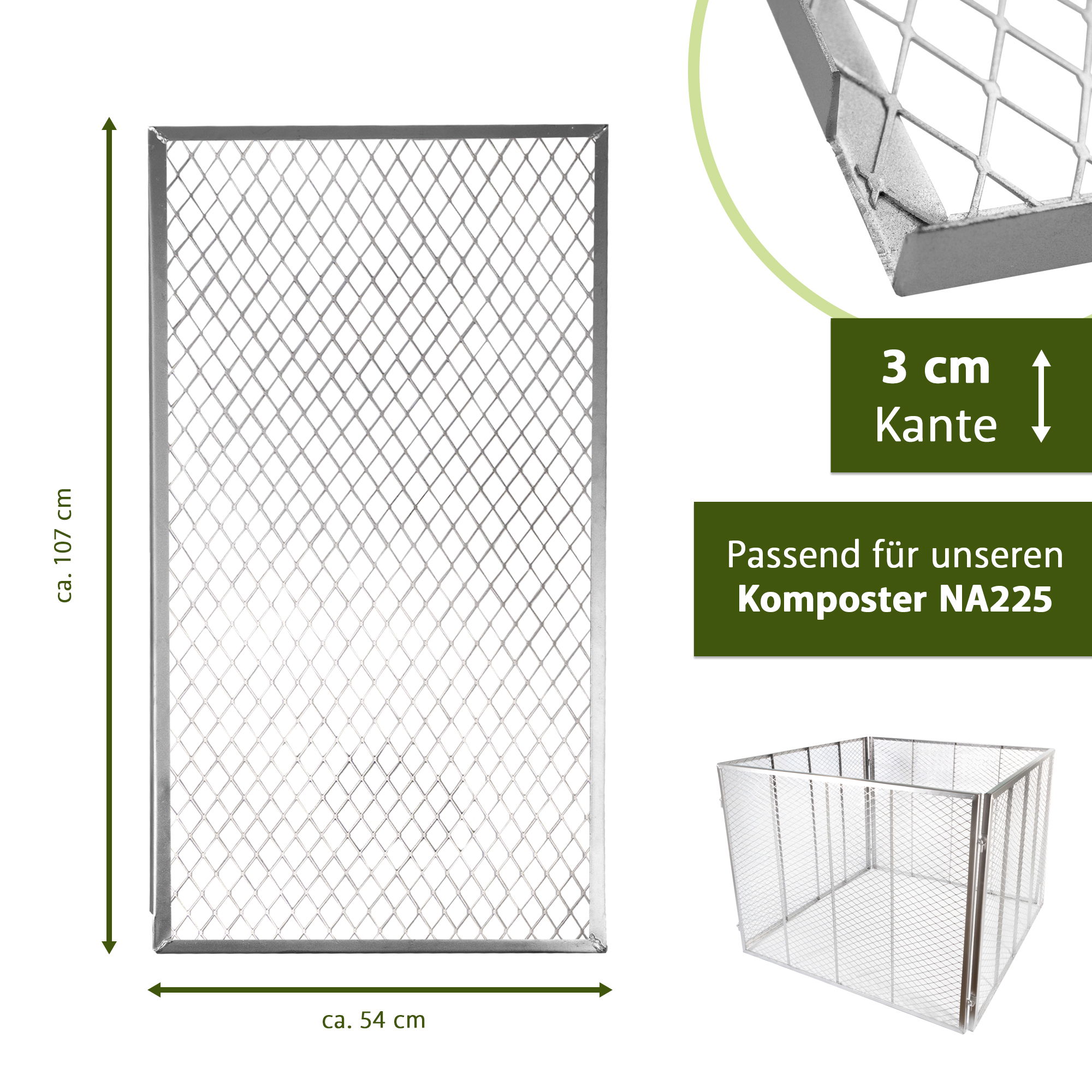 Mit diesem zweiteiligen Deckel für Metallkomposter hältst du deinen Kompost zuverlässig geschützt und trotzdem gut belüftet. Die beiden Gitterelemente aus verzinktem Stahl liegen passgenau auf vielen gängigen Metallkompostern und verhindern, dass Laub, Rasenschnitt oder Küchenabfälle vom Wind davongetragen werden. Gleichzeitig halten die engmaschigen Gitter Tiere wie Vögel oder Kleinnager fern, sodass dein Kompostmaterial ungestört verrotten kann.