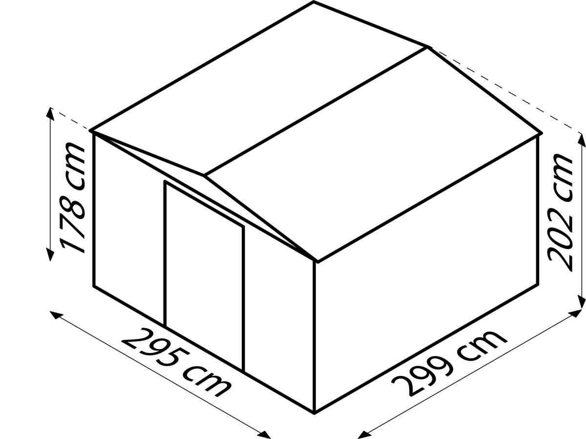 - Außenmaß: 309 x 308 x 202 cm (L x B x H)