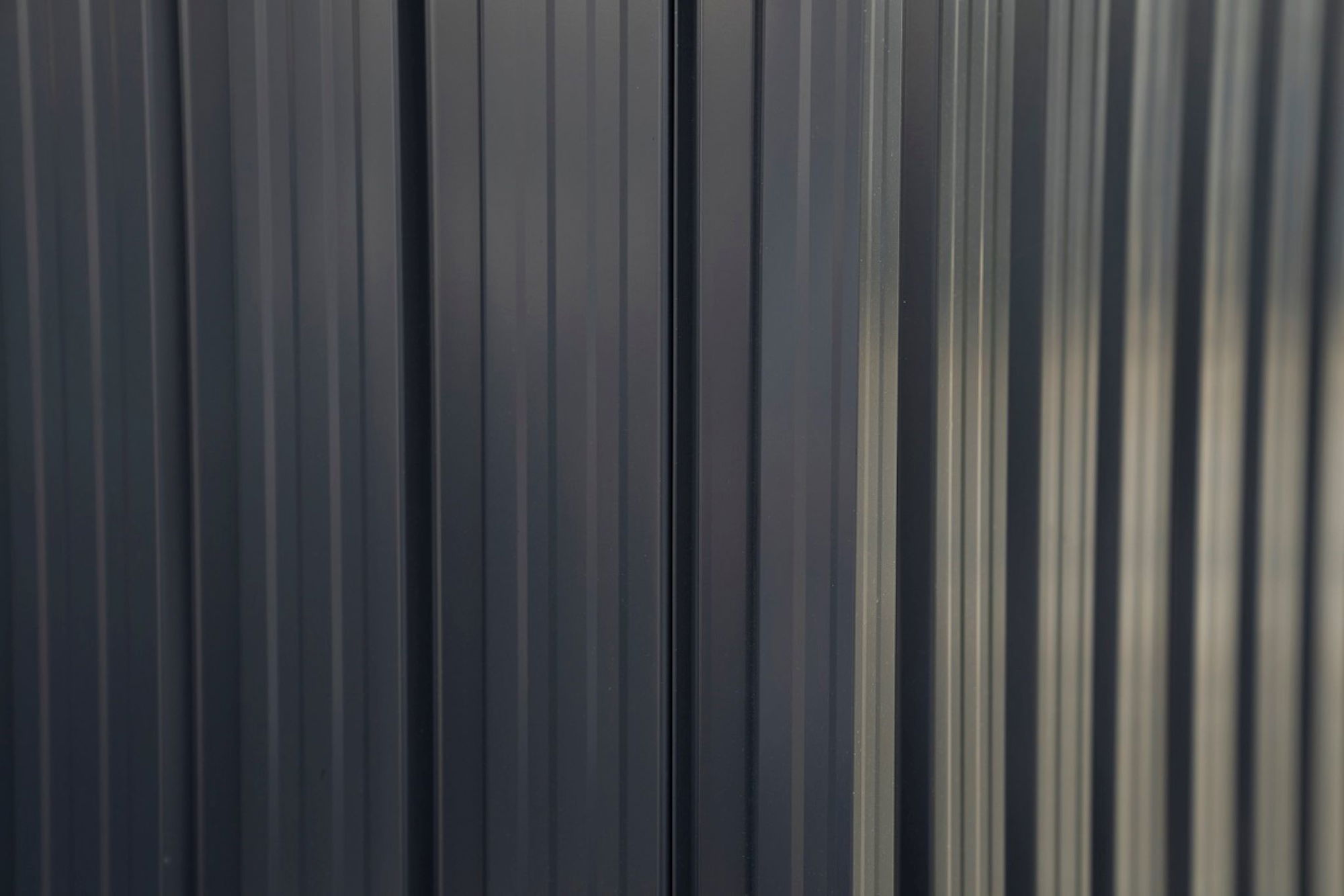 Das Gerätehaus "DRESDEN II 86" bietet viele universelle Einsatzmöglichkeiten. Mit einer Firsthöhe von über zwei Metern bietet der Metallschuppen viel Freiraum zum Räumen, Verstauen und zur entspannten Entnahme von Gartengeräten und Werkzeug. Eine hohe zweiteilige und innenliegende Schiebetüre ermöglicht einen bequemen Zutritt auch im Winter bei Schnee. Das dezent in anthrazit und creme gestaltete Gartenhaus ist aus galvanisch verzinktem Stahlblech gefertigt. Eine zusätzliche Polyesterlackierung schützt vor Rost und Kratzern. Dach- und Bodenrahmenteile sind feuerverzinkt und optimal für die erhöhten Anforderungen durch Bodenkontakt und Witterung ausgestattet. Lieferung erfolgt zerlegt ohne Boden.