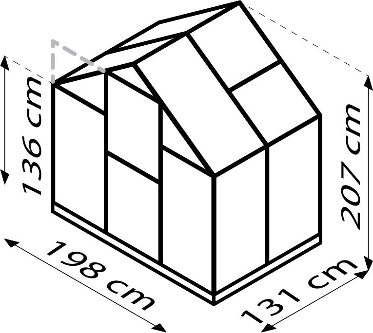 - Außenmaß: 198 x 131 x 207 cm (B x T x H)