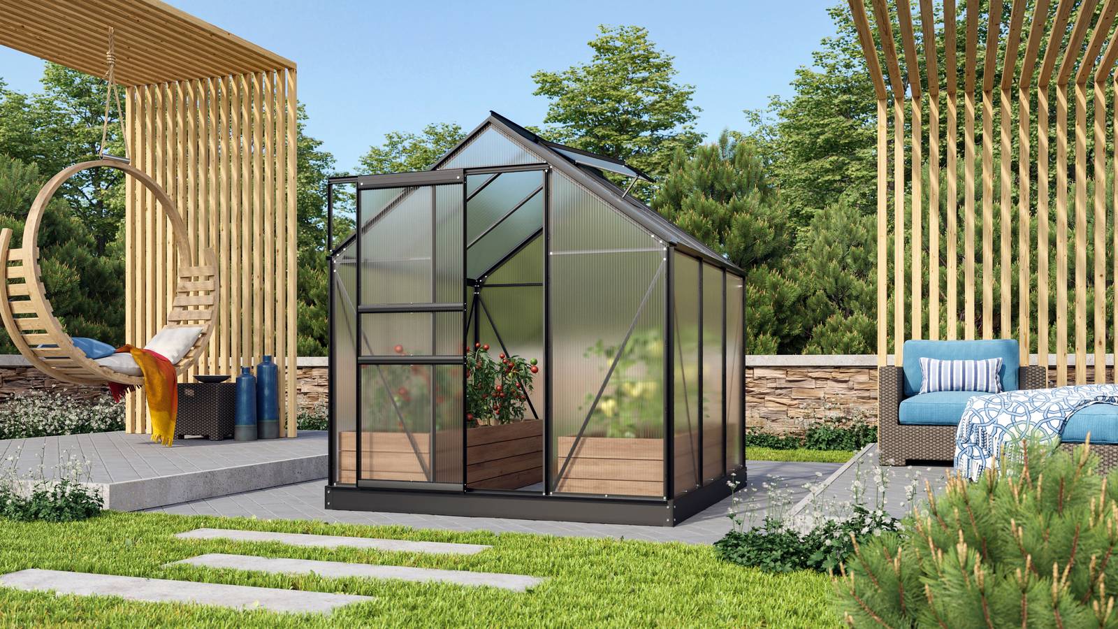 Gewächshaus VENUS 3800 195x195x197cm schwarz, Gartenhaus HKP 4mm