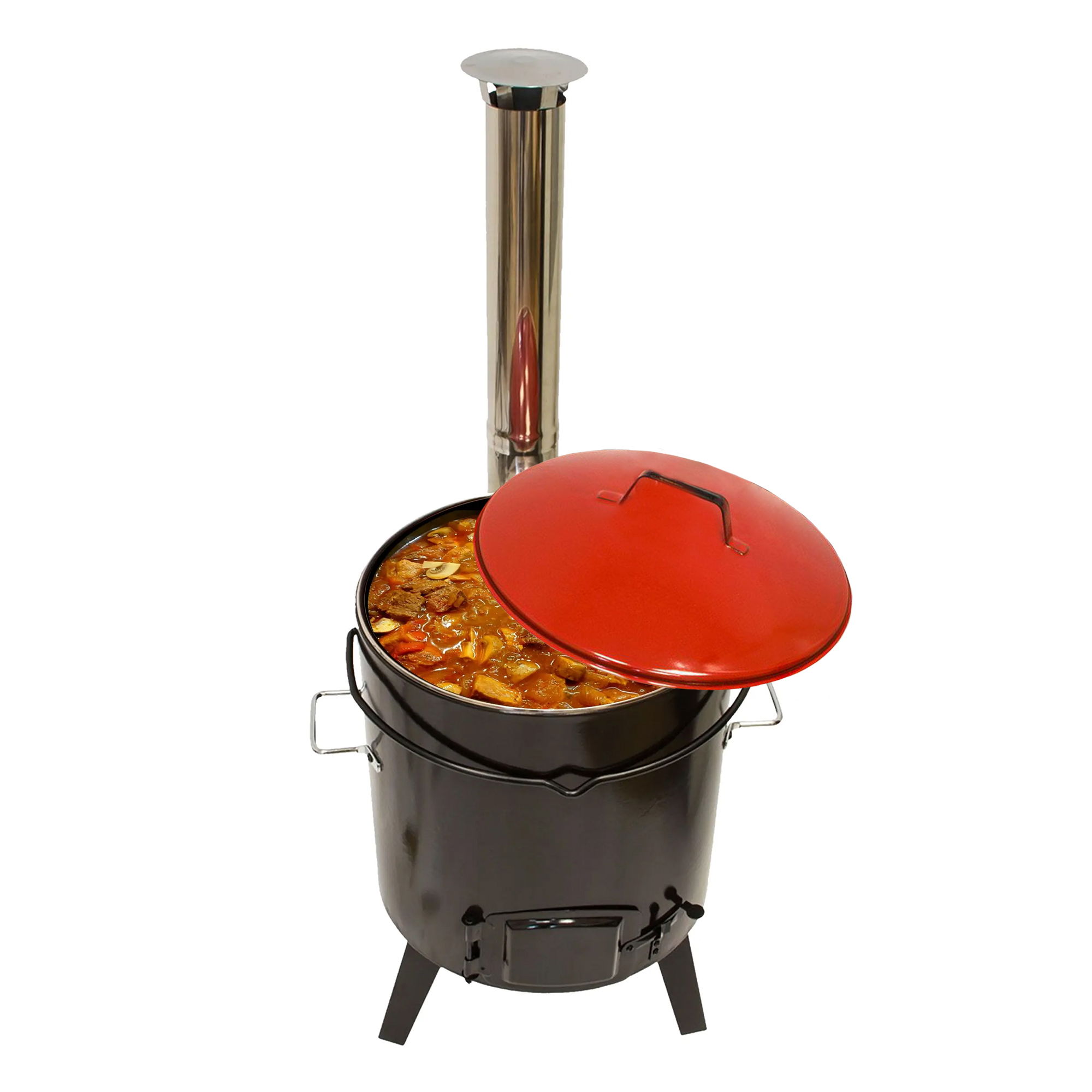 Du möchtest unabhängig von Strom und Gas kochen und gleichzeitig eine zusätzliche Wärmequelle im Garten haben? Mit dieser Gulaschkanone erhältst du einen krisensicheren Outdoor-Ofen, mit dem du Eintöpfe, Suppen, Maronen oder Glühwein über offenem Feuer zubereitest und dich dabei gemütlich aufwärmen kannst.
