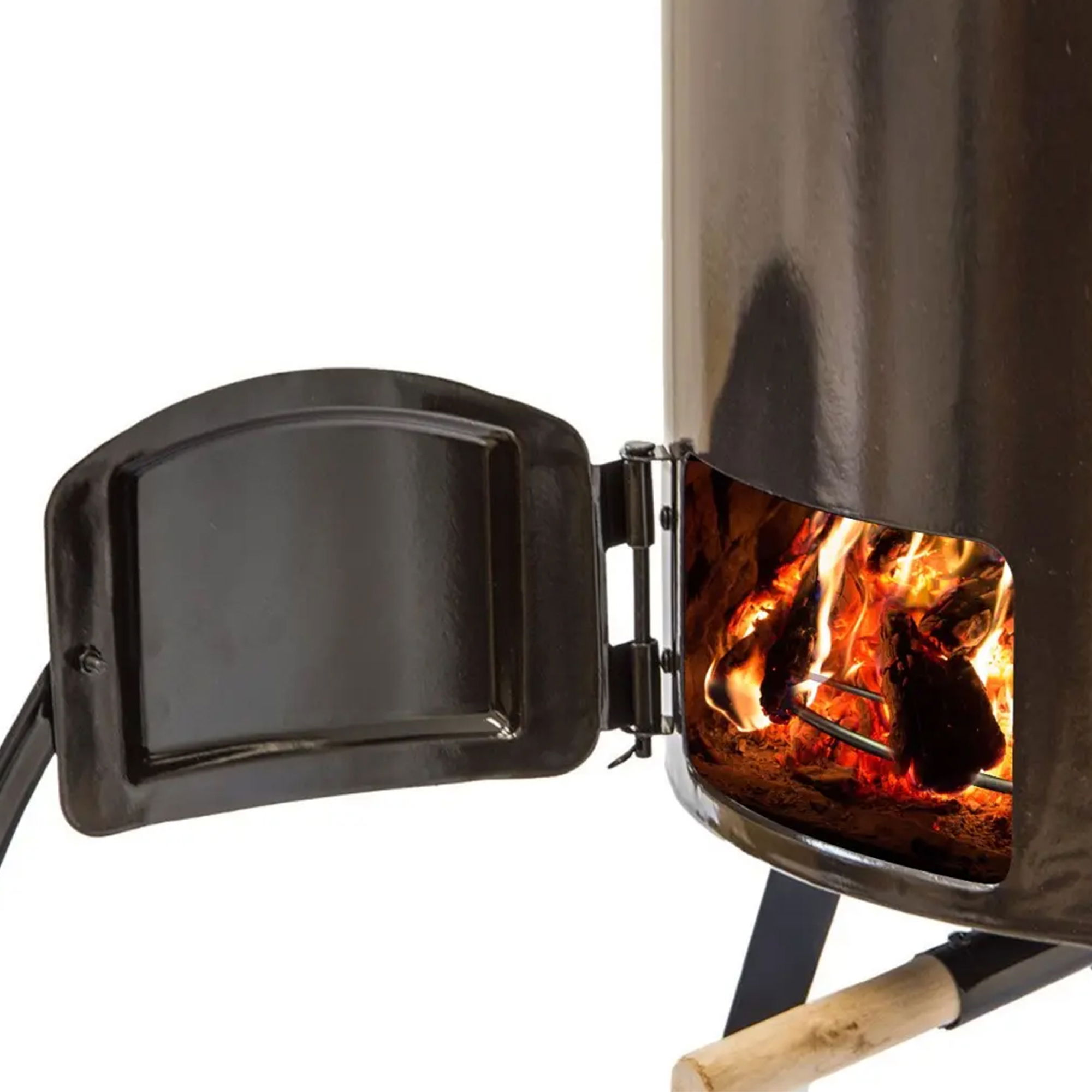 - Pulverbeschichtetes Metallgehäuse mit stabilem Stand und praktischem Kaminrohr aus Edelstahl