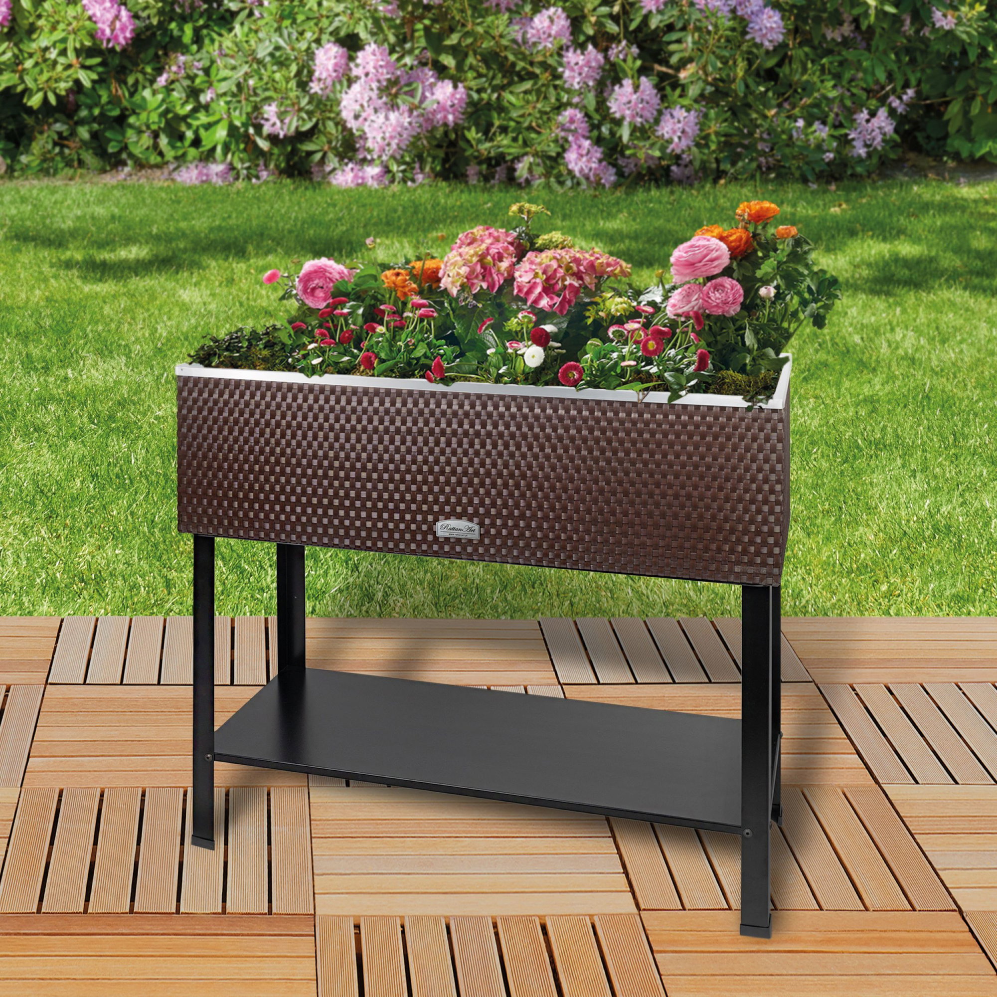 Produktinformationen "Hochbeet in Rattan-Optik, Kräuterbeet braun 95x40x85cm"