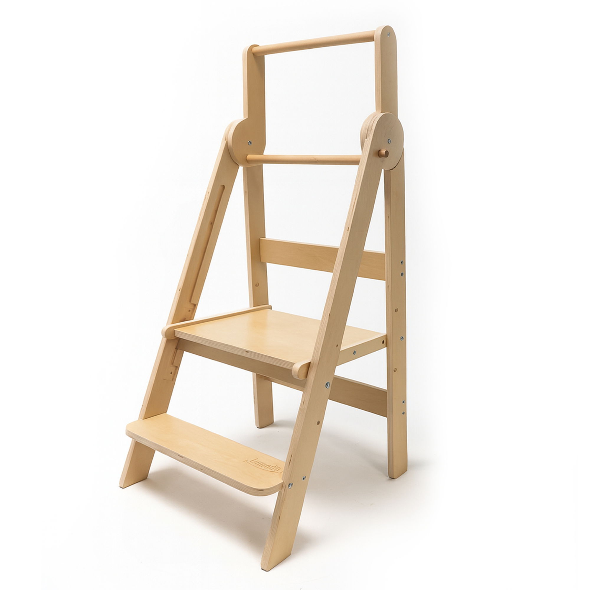 Montessori Lernturm klappbar aus Birkenholz, 3-fach höhenverstellbar