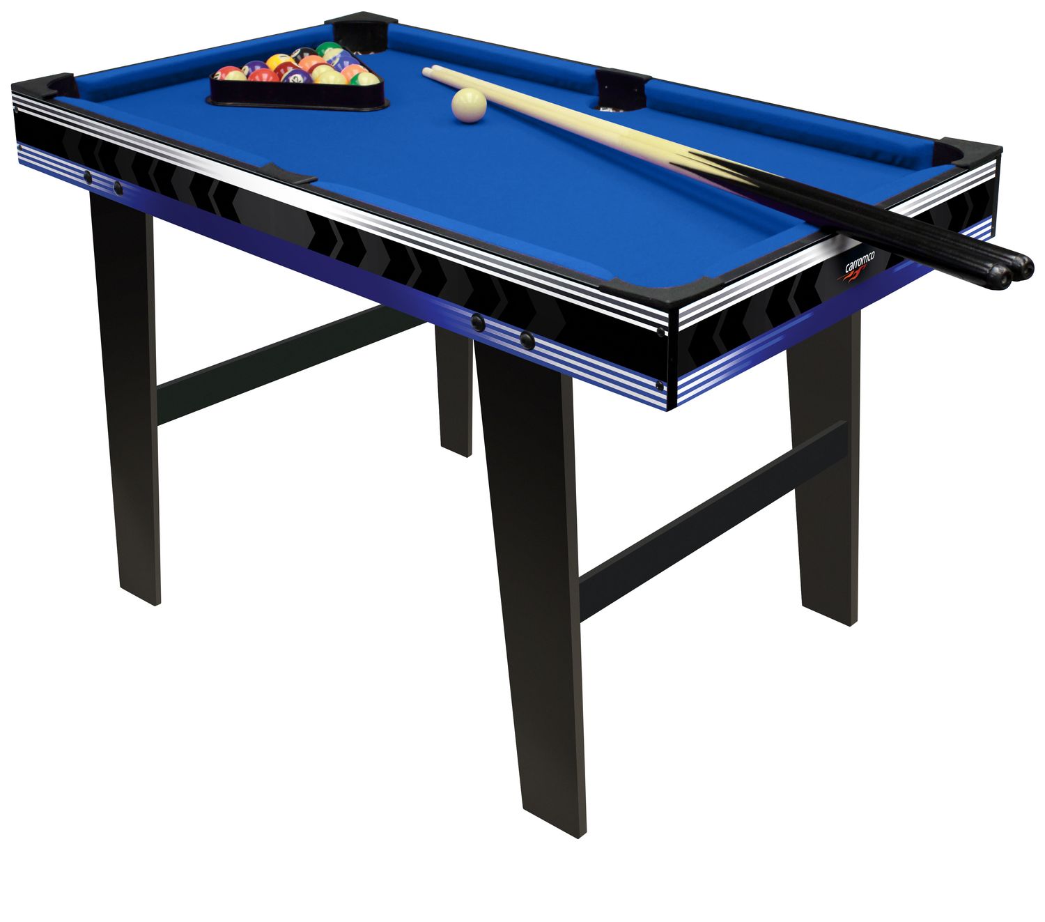 - Zubehör: Billardkugeln (38 mm), 2 Queues, 2 Kickerbälle,