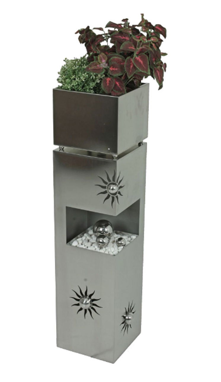 Pflanzsäule SONNE aus Edelstahl, eckig mit Deko-Elementen
