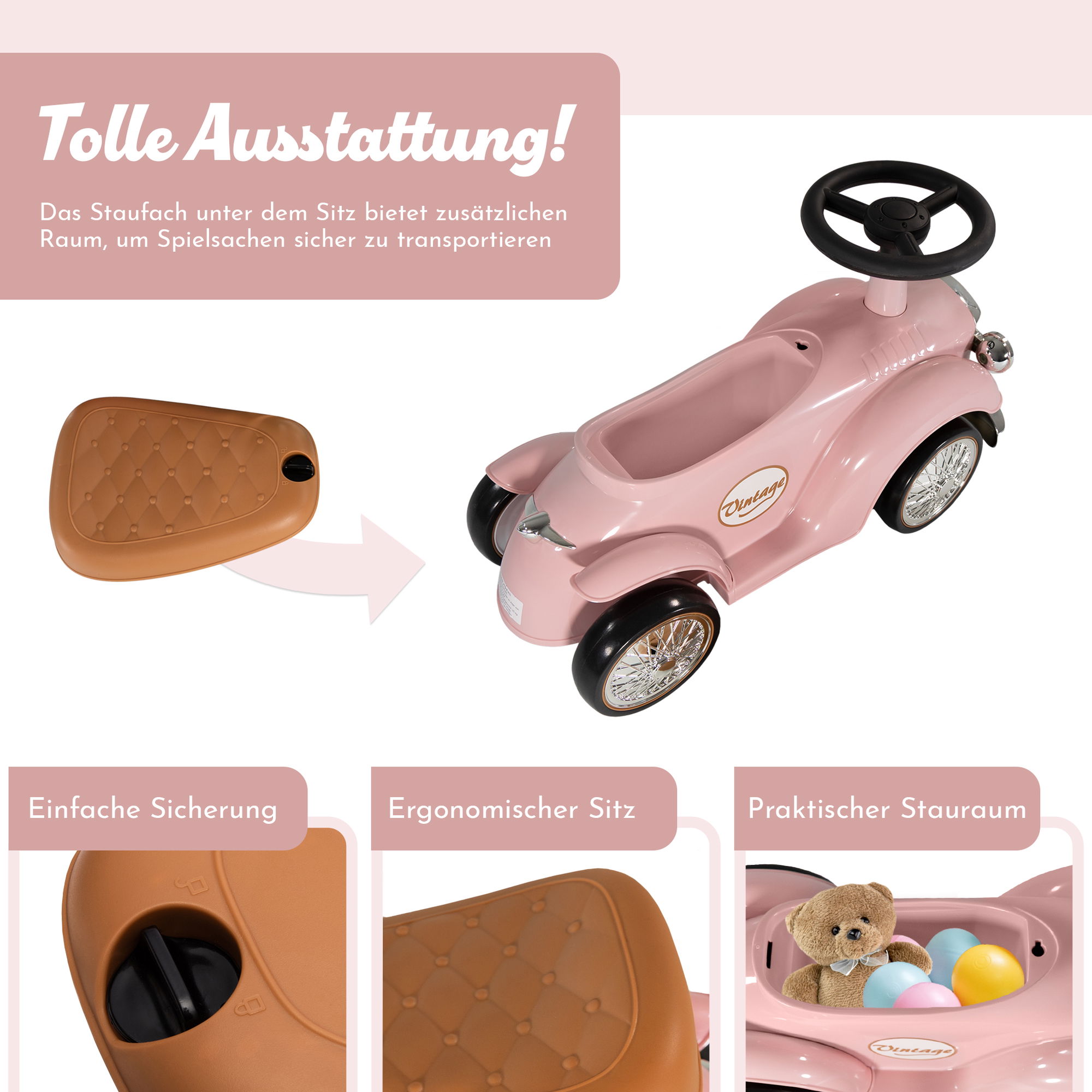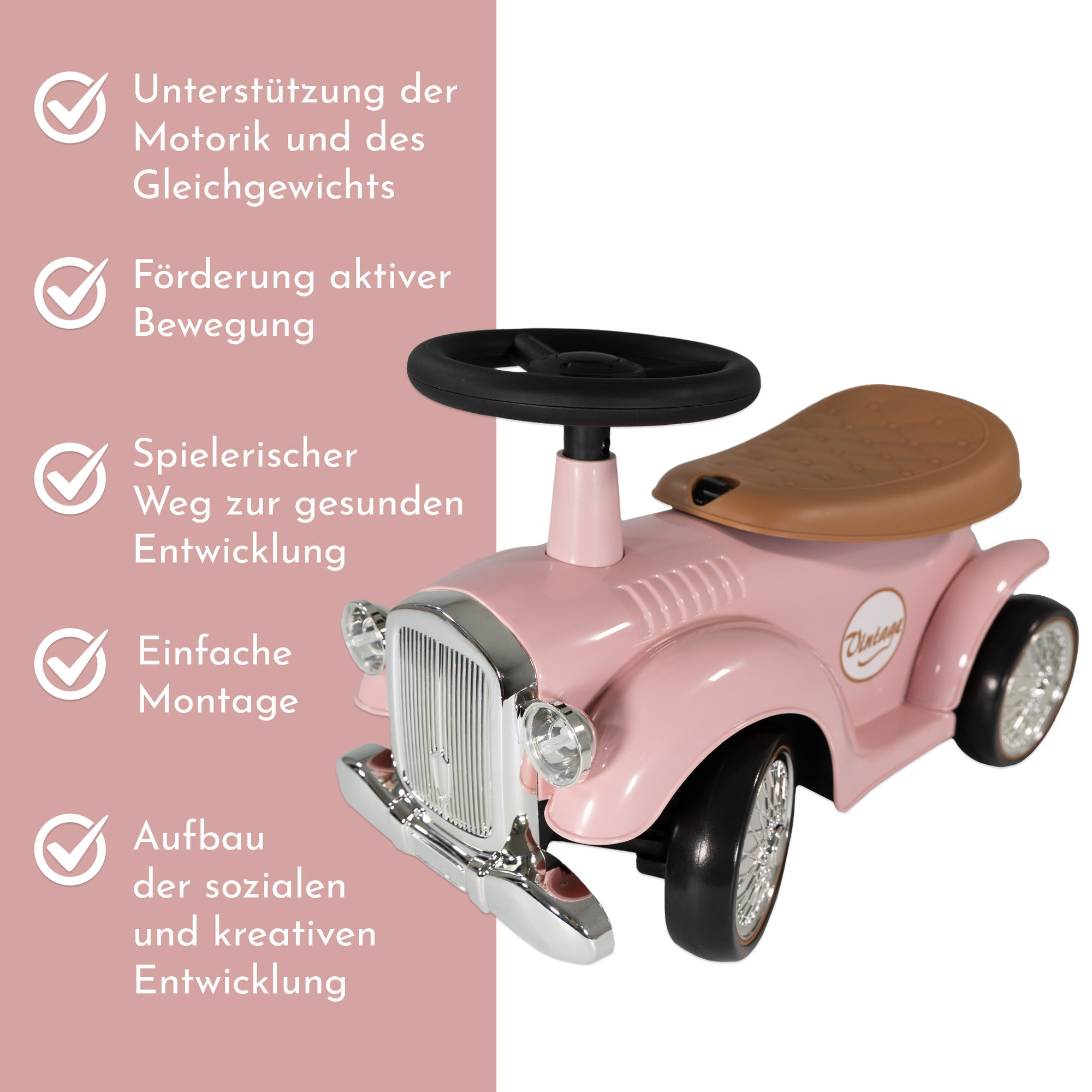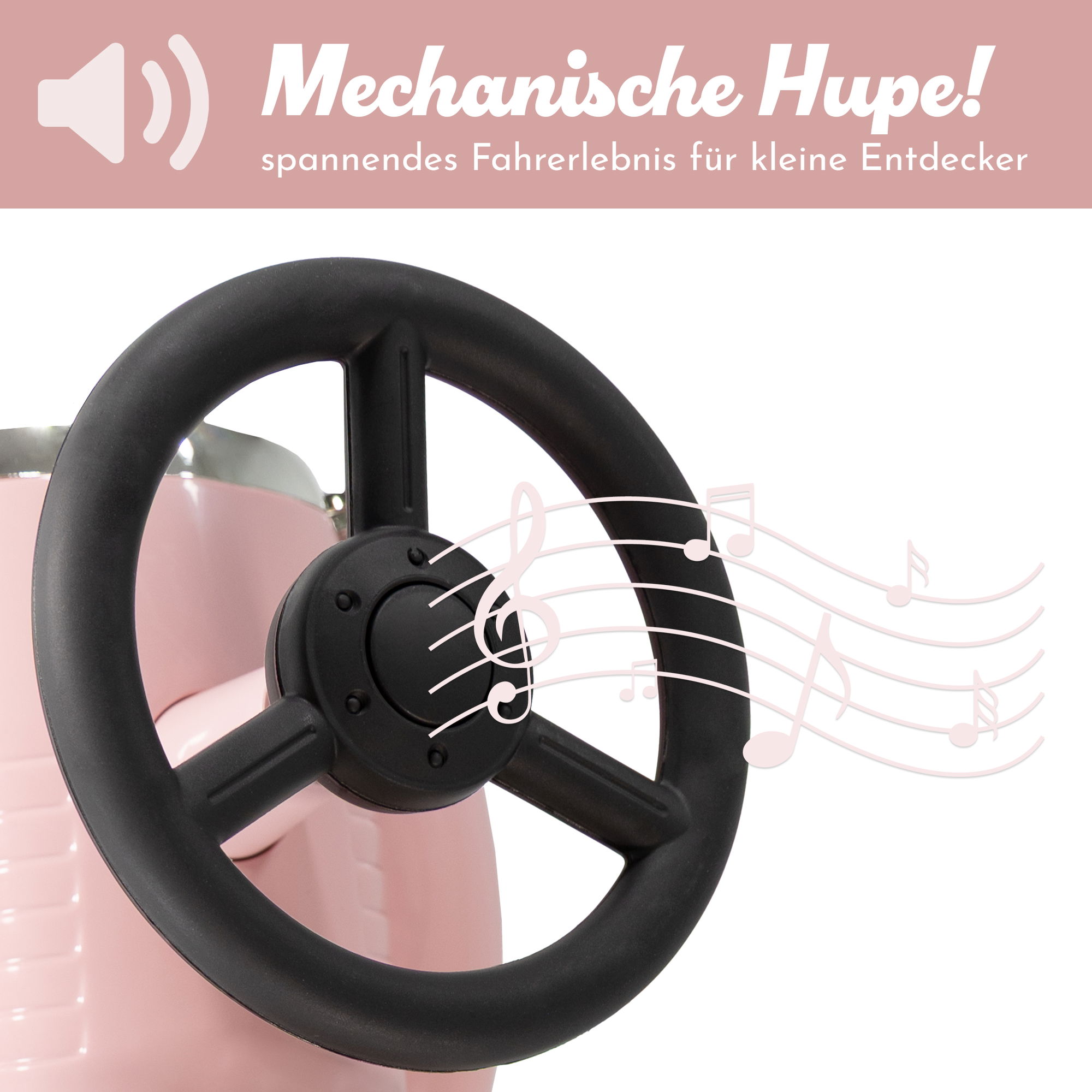 Rutschauto ab 1 Jahr, Kinderauto im Retrodesign, Kinderfahrzeug mit Hupe, pink