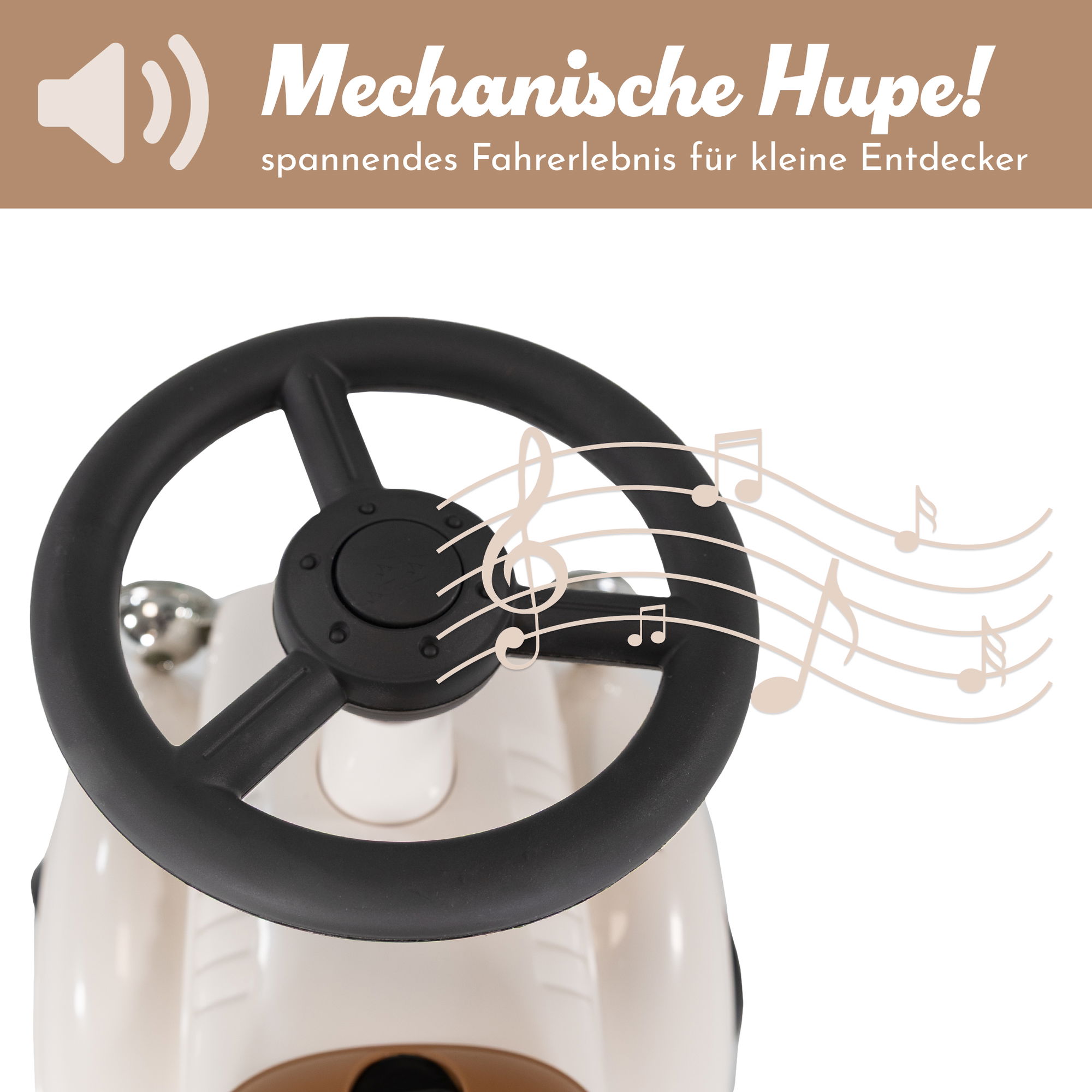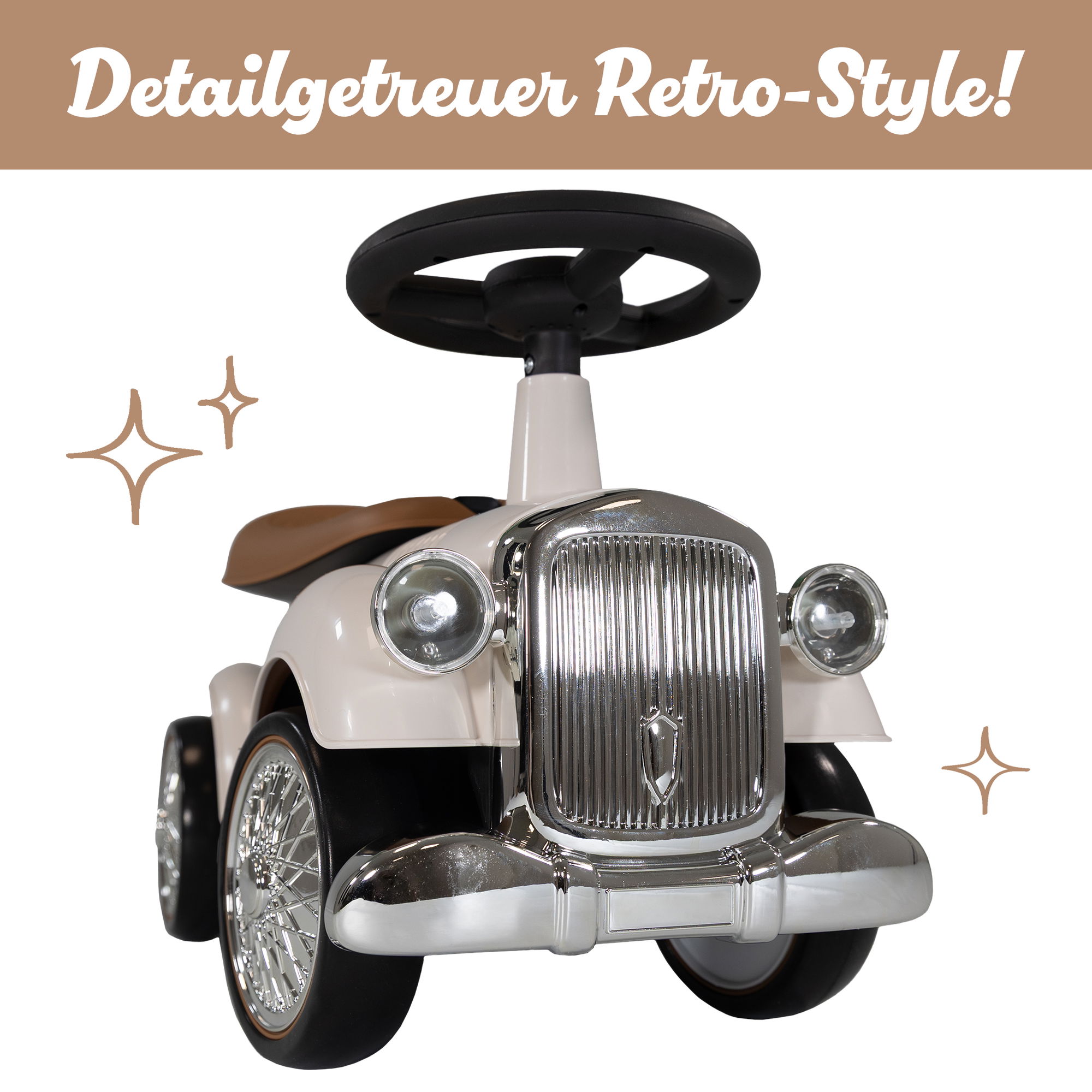 Rutschauto ab 1 Jahr, Kinderauto im Retrodesign, Kinderfahrzeug mit Hupe, weiß