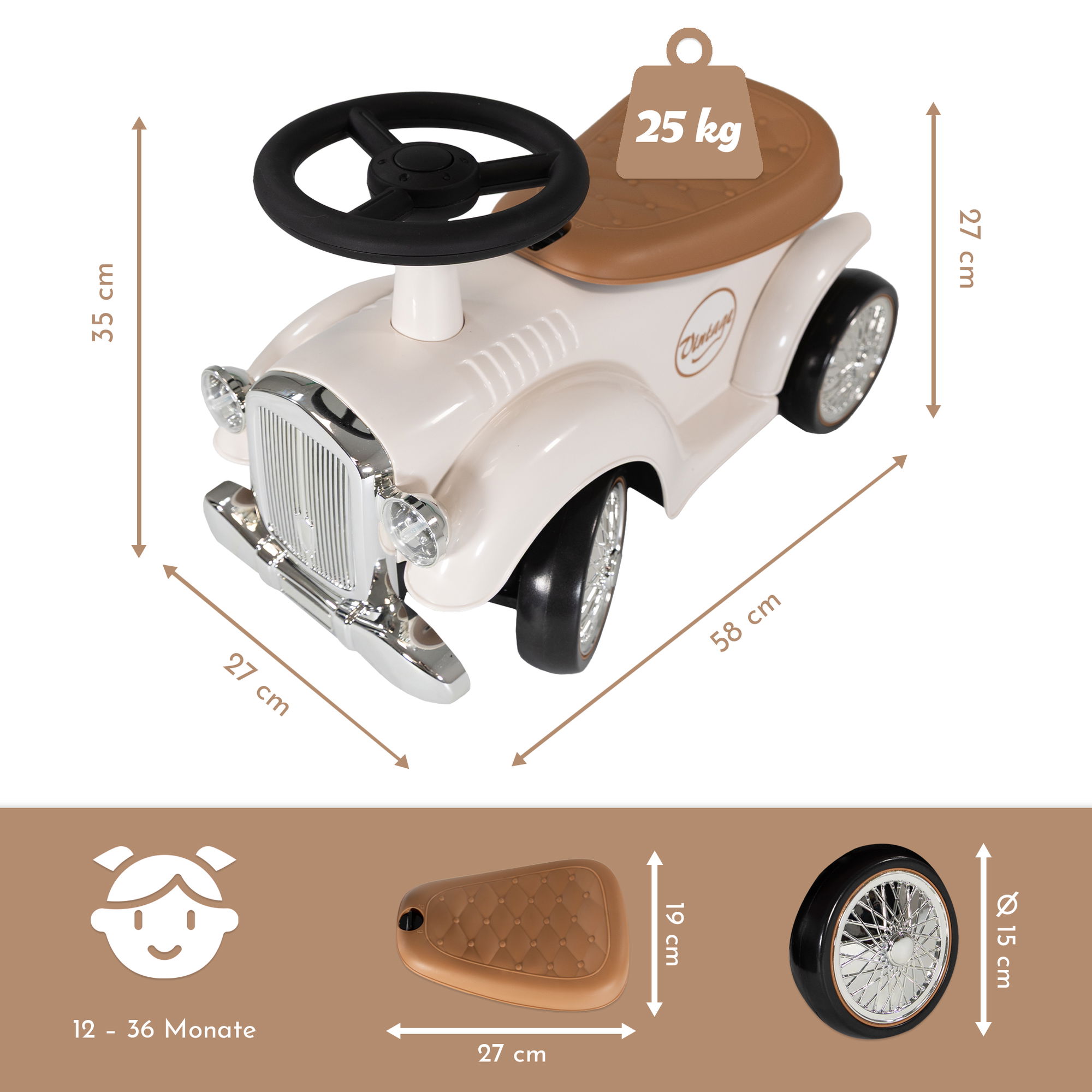 Produktinformationen "Rutschauto ab 1 Jahr, Kinderauto im Retrodesign, Kinderfahrzeug mit Hupe, weiß"