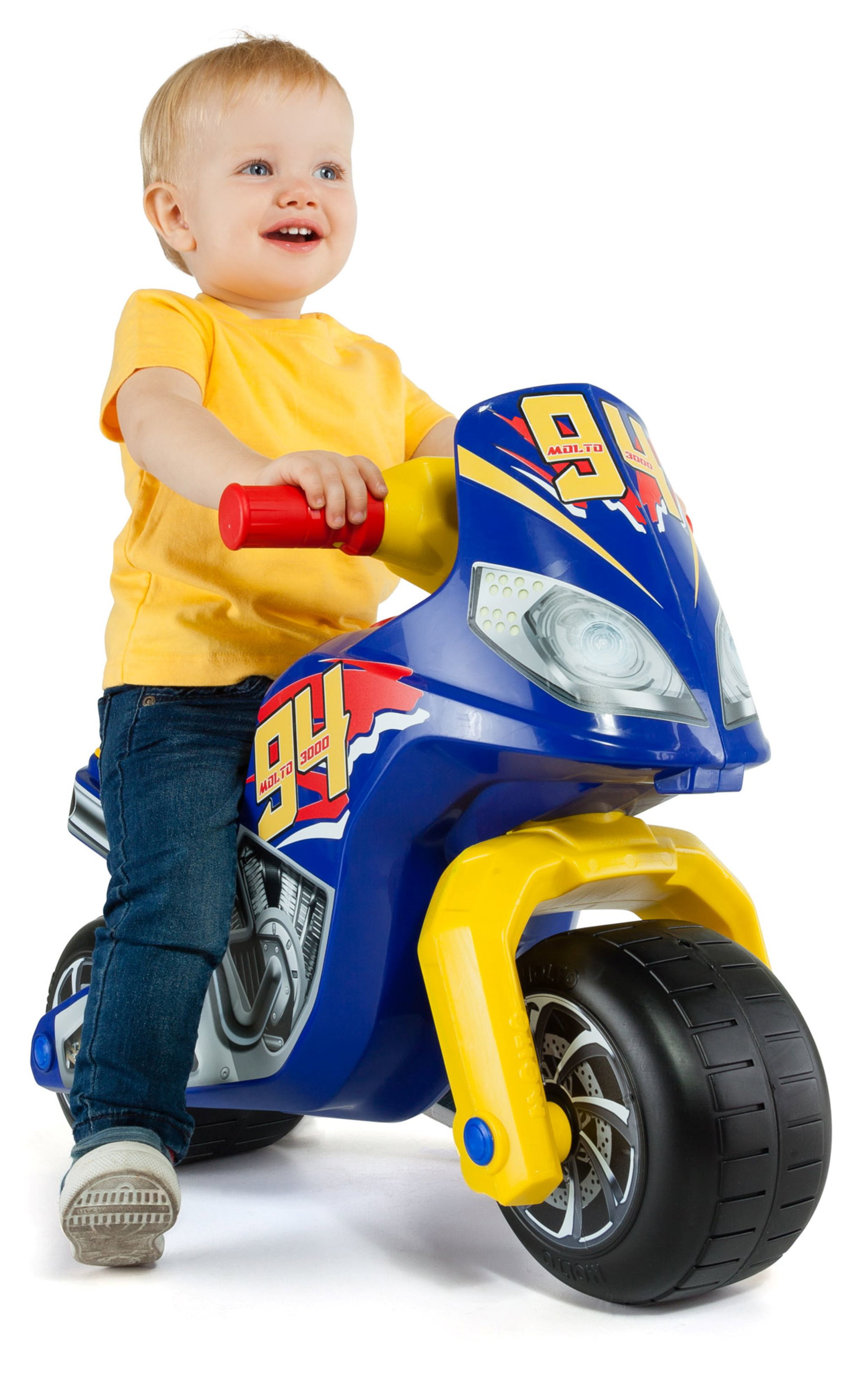 Mit den Farben blau, gelb und rot sowie dem sportlichen Aufdruck 94 wird das Rutschmotorrad schnell zum Lieblingsspielzeug. Das ansprechende Design motiviert dein Kind zusätzlich, sich aktiv zu bewegen und immer wieder neue Fahrversuche zu starten.