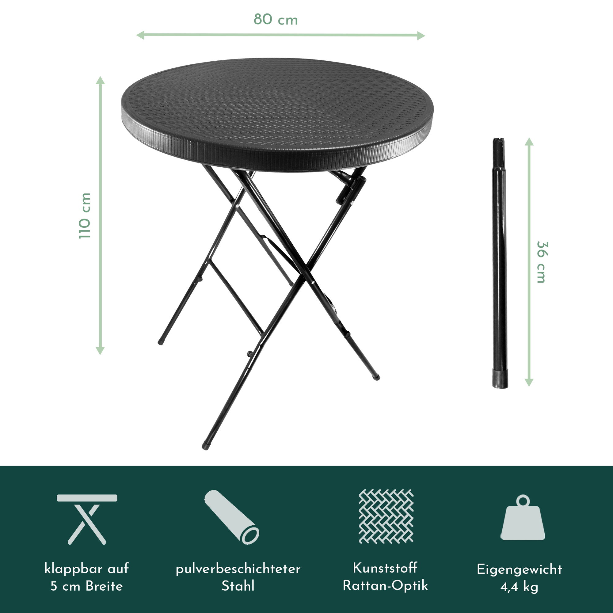 Produktinformationen "Stehtisch klappbar 80 cm schwarz in Rattan-Optik, Höhe 110 cm"