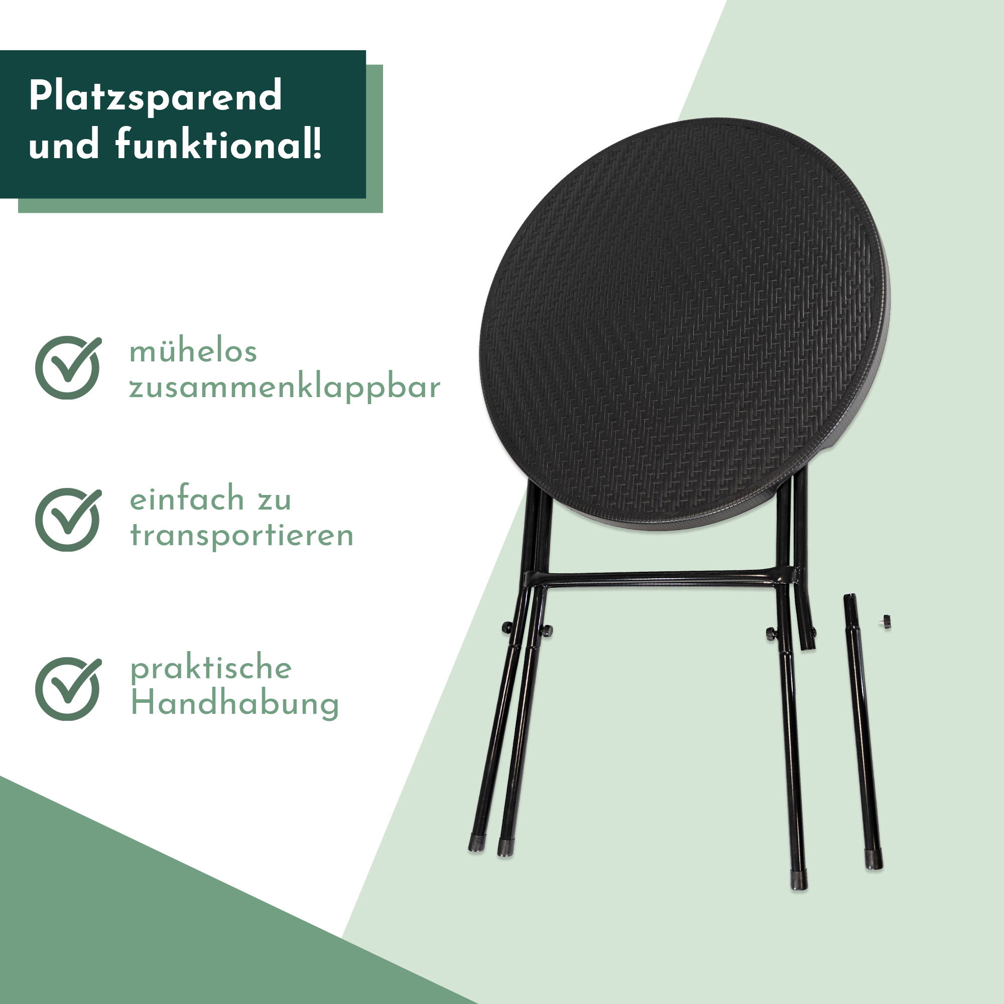 - Praktisch klappbar mit abnehmbaren Beinen – leicht zu transportieren und platzsparend zu lagern