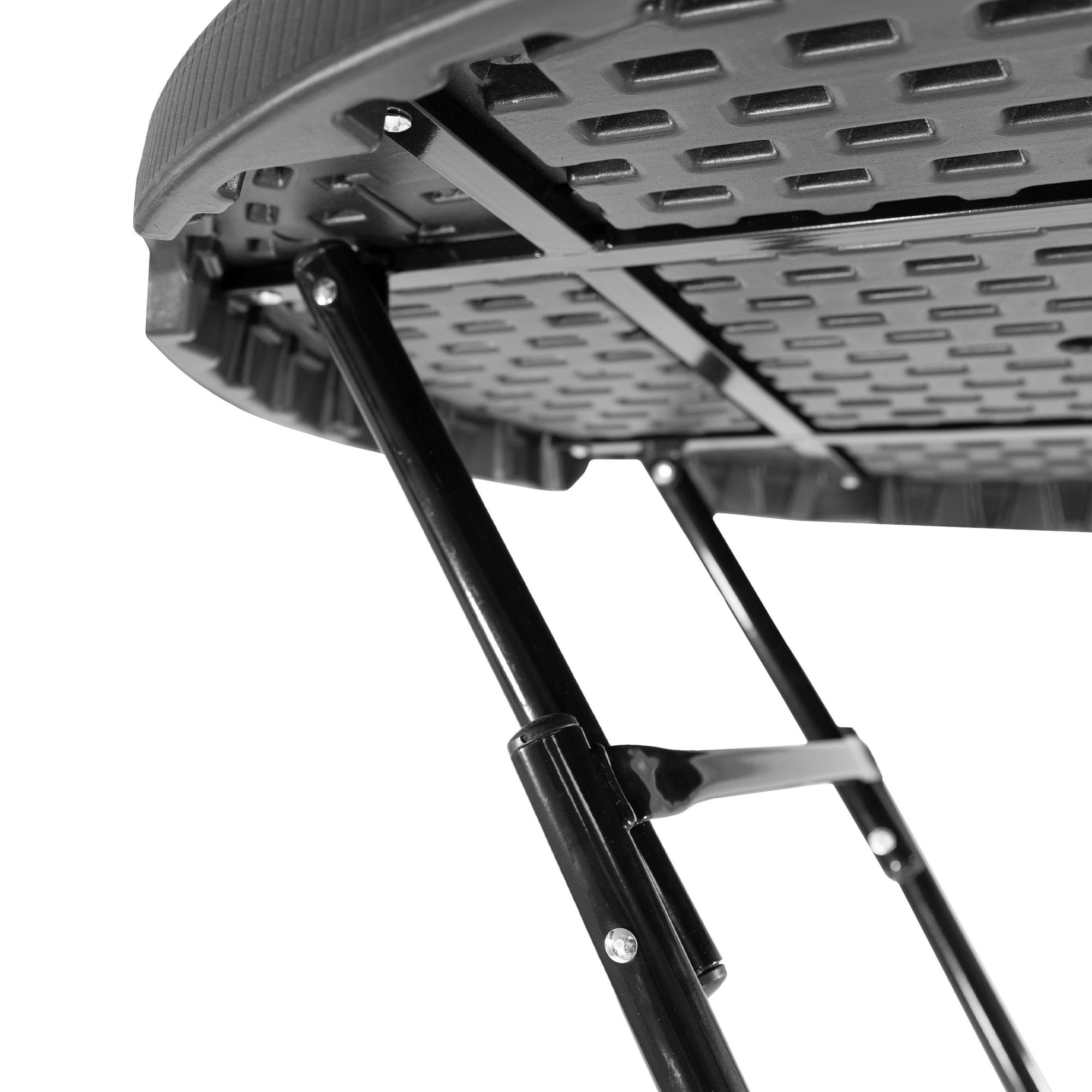 Die Kunststoff-Tischplatte in Rattan-Optik ist nicht nur ein optisches Highlight, sondern auch besonders pflegeleicht. Verschüttete Getränke oder Essensreste können einfach mit einem feuchten Tuch abgewischt werden. Dank der wetterfesten Materialien eignet sich der Tisch sowohl für den Innen- als auch für den Außenbereich. Egal ob als Partytisch, zusätzlicher Buffetplatz, Messestand oder Stehtisch in der Gastronomie – dieser klappbare Stehtisch passt sich deinen Einsätzen flexibel an.