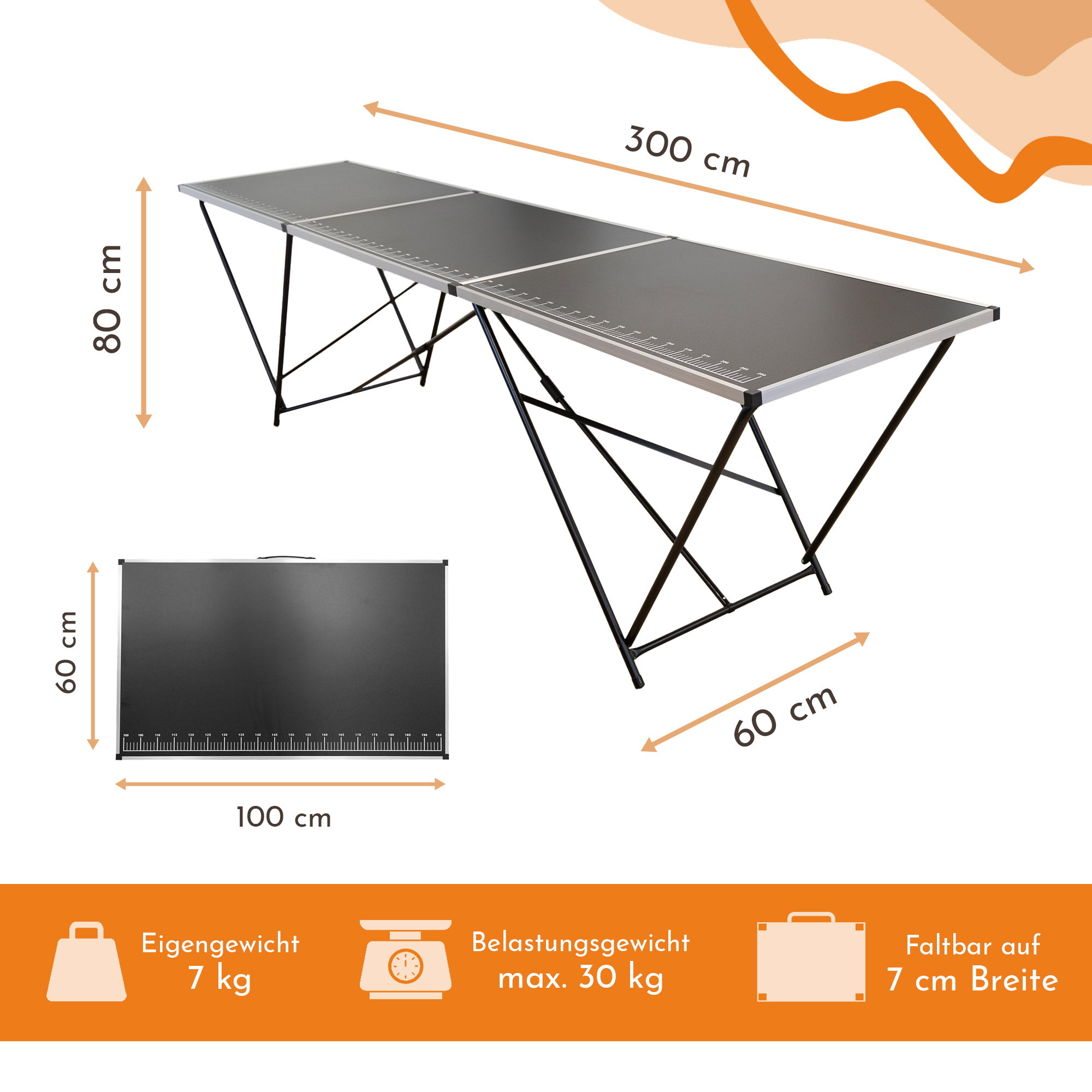 Produktinformationen "Tapeziertisch klappbar, Arbeitstisch mit Messskala, Mehrzwecktisch, Flohmarkttisch"