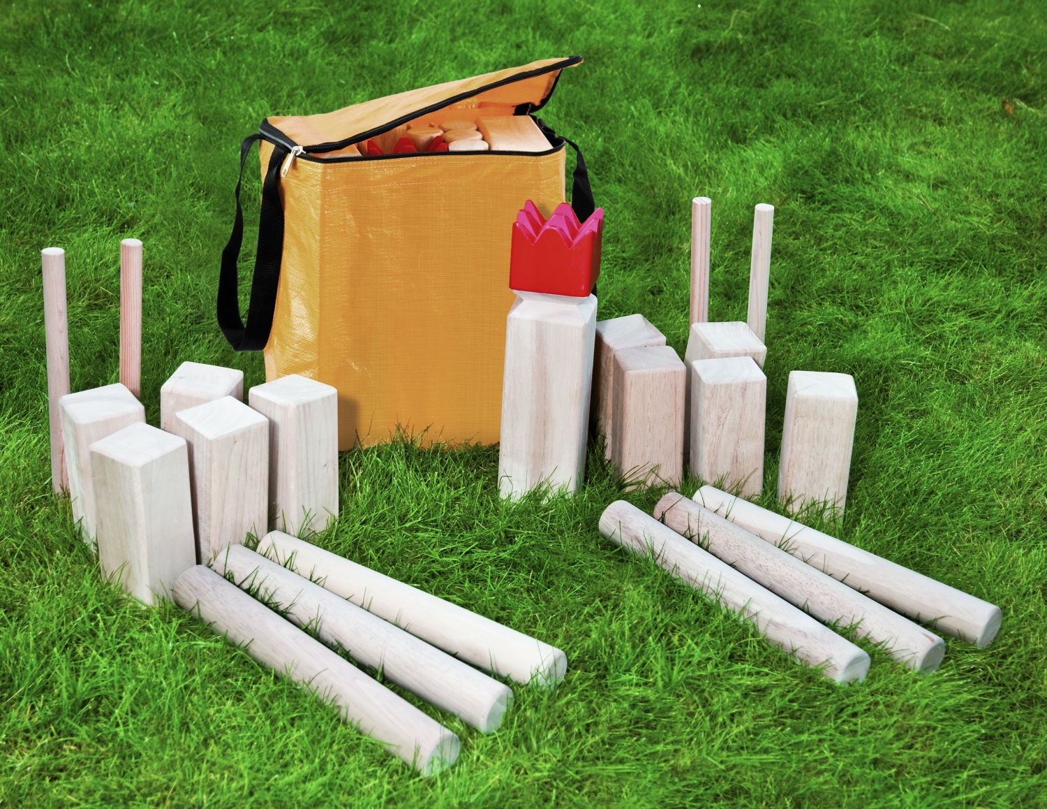 Ziel dieses Spiels ist es, auf dem "Schlachtfeld" zuerst die "Knechte" und schließlich den "König" mit den Wurfhölzern "umzuhauen". Ein Riesenspaß für spielerische Wettbewerbe unter freiem Himmel.