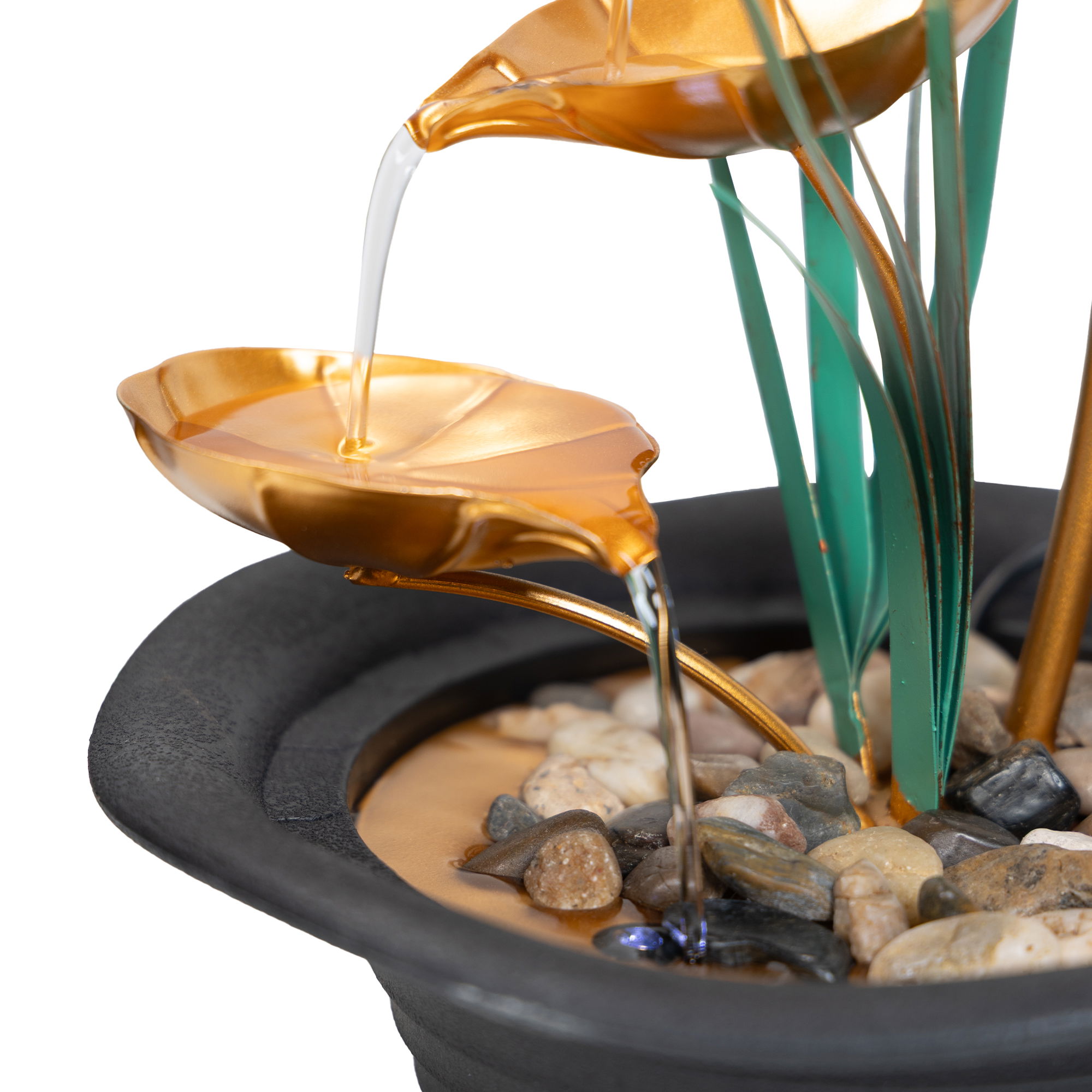 Produktinformationen "Zimmerbrunnen mit Wasserfall, Dekobrunnen mit Metallblätter mit 3 Stufen"