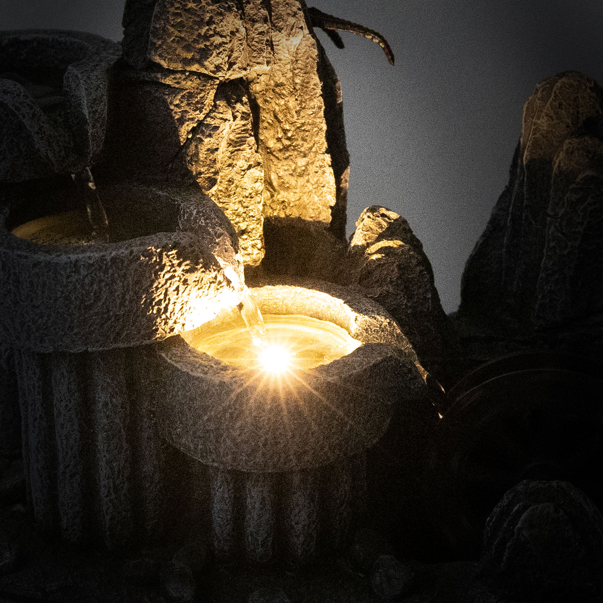 Mit seinem kompakten Format lässt sich der Indoor-Feng-Shui-Brunnen flexibel aufstellen – ob auf dem Schreibtisch, im Eingangsbereich oder auf der Fensterbank. Die moderne LED-Lichtquelle taucht den Kaskadenbrunnen in ein sanftes Licht, das besonders am Abend für stimmungsvolle Akzente sorgt. Durch die natürliche Luftbefeuchtung wird zudem das Raumklima spürbar verbessert – ein echtes Plus in der Heizsaison.